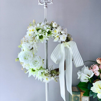 毎日目にする場所だからこそ、 悲しみを強調するものではなく、 思い出とともに、静かに暮らしに馴染むかたちで寄り添ってくれる存在を選びたい。そんな想いから生まれたのが、川越花冠のメモリアルリースです。